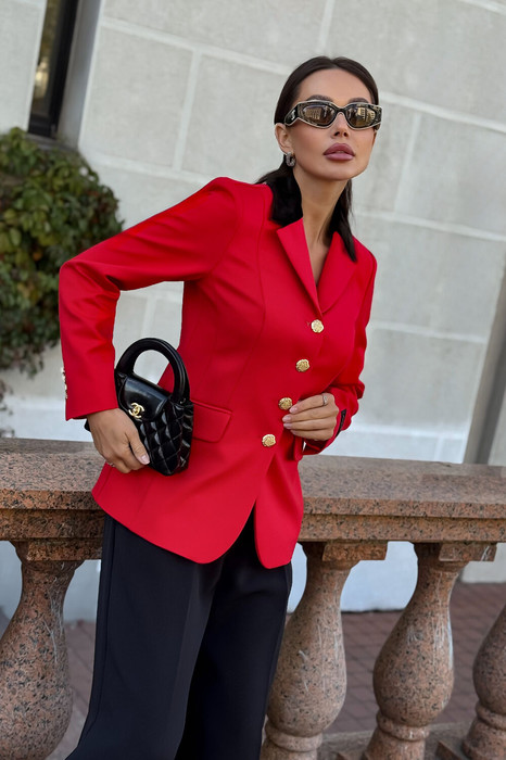 Женский красный жакет URS — воплощение элегантности и силы, классический элемент современного гардероба, который объединяет комфорт, женственность и уверенный деловой стиль. Этот приталенный жакет женский выполнен с идеальной посадкой по фигуре, подчеркивает линию талии и визуально вытягивает силуэт, создавая гармоничный и утончённый образ.