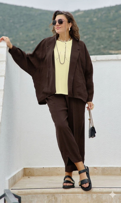 Жакет в спортивном стиле из ткани купра. Жакет прямого силуэта, пластичная форма мягкая, плавная. Линия плеч с естественным наклоном и плавным переходом в линию рукава. Жакет свободный, без подкладки и застежки. Крой легкий, сохраняющий объем изделия. По переду выполнены удобные карманы с листочками. Крой рукава-реглан с манжетой по низу и застежкой на кнопку. Спинка разрезная с декоративным маленьким разрезом внизу. Воротник с отложными лацканами. Жакет подойдет для прогулок, посиделок с друзьями, похода в кафе и отдыха. Модель свободного кроя органично впишется в гардероб, всегда будет элегантной и уместной, эта модель «вне времени» и будет актуальна в следующих сезонах. Жакет комфортен в носке на каждый день, создает женственный и элегантный образ. Мы используем материалы высокого качества, делаем акцент на фигуру и современный крой, что позволяет нашим изделиям не терять актуальности, а для вас служить выгодным приобретением. Длина жакета 71 см (р 52-56), 72 см (р 58-62), длина рукава 72 см (р 52-56), 73 см (р 58-62).