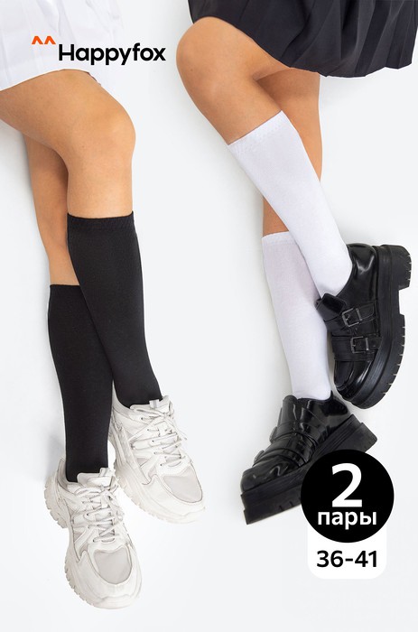 Набор гольфов для женщин выполнен из натурального хлопка с добавлением синтетических волокон. В комплекте 2 пары: черные и белые гольфы.
