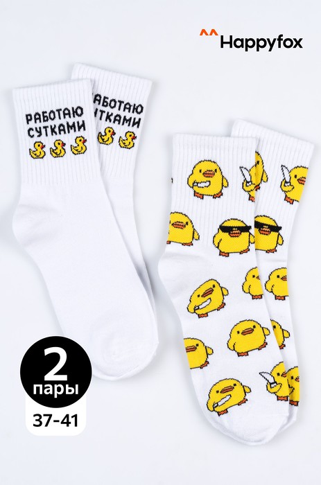 Высокие женские носки представлены в белом цвете и украшены смешными рисунками Утки, в наборе 2 пары. Демисезонные носки выполнены с высоким содержанием натурального хлопка.