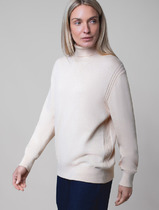 Свободный крой с удлинённым рукавом и крупной вязкой косы создаёт расслабленный и современный вид. Кремовый цвет придаёт свитеру универсальность и позволяет легко сочетать его с различными оттенками, добавляя нотки нарядности.