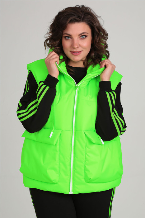 Стильный стеганный жилет с капюшоном и накладными карманами "портфель", выполнен из курточной ткани. По низу регулируемая кулиска. Утеплитель "FeelGood" 150г./метр кв.