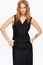Жилет свободного силуэта из объемной стеганой ткани. Жилет на подкладке. Спущенная линия плеча, застёжка на кнопки. По переду широкие накладные карманы с клапаном с боковым входом для удобства. В комплекте идёт пояс из основной ткани. Длина по спинке 71-73 см.