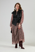 Жилет на пуговицах светло-коричневый с рисунком павлопосадского платка.