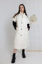 Жилет женский прямого силуэта, со спущенной линией плеча, на подкладке. По горловине капюшон. По переду прорезные карманы с листочкой. Спинка в верхней части со швом, по спинке и полочке косые подрезы. Застежка смещенная на молнию. Низ жилета фигурной формы. Отличный вариант жилета для стильных образов!