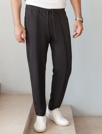 Брюки прямые на резинке из футера двухнитки с эластаном с затяжкой по низу