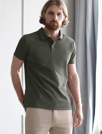 Поло из фактурного трикотажа с застежкой на пуговицы