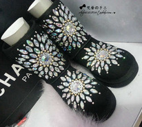 УГГИ из овчины, иск.мех, стразы из горного хрусталя