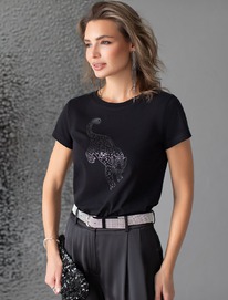 Нарядная футболка с принтом стразами из премиального хлопка с эластаном
