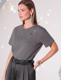 Нарядная футболка с принтом пайетками из премиального хлопка с эластаном