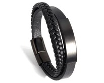 Браслет, кожа , сталь, ALB-ИМ21-1