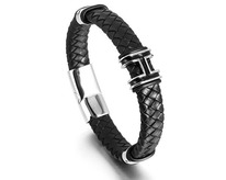 Браслет, кожа , сталь, ALB-ИМ10