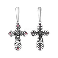 Крест религиозный из чернёного серебра с фианитами - Спаси и сохрани 3,6 см