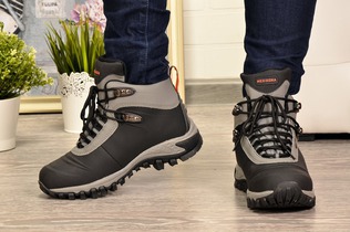 — СКИДКА! Ботинки АОКА т.серый зима нубук/нат.мех