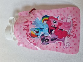 Новая бутылочка для питья Hasbro My Little Pony Friendship Is Magic Collapsible Water Bottle с карабином. На складной бутылке с водой изображены «Радужный рывок», «Сумеречная искорка» и Пинки Пай среди слов «Дружба… это волшебство!» Имеет широкую горловину для легкого заполнения, стоит когда полностью наполнена, складывается или сплющивается когда пустая, можно замораживать на ночь, в комплекте клип карабин который можно прикрепить к рюкзакам, спортивным сумкам и т. д. поэтому вы не потеряете его. Не содержит BPA и безопасна, можно мыть в посудомоечной машине. Этот складной флакон с прохладным розовым рисунком с сердечками, цветами и звездами отлично подойдет любителям My Little Pony: Friendship is Magic! Объем: 12 унций, 350 мл.