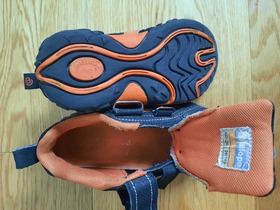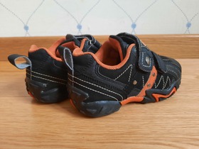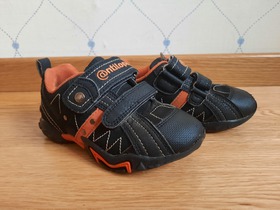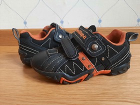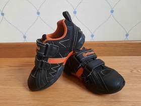Б/У, кроссовки российского производителя Антилопа, артикул 24331-2242. Контрастная строчка придает кожаному верху непринужденный вид, а застежки на липучках обеспечивают легкий доступ. Резиновая подошва обеспечивает хорошее сцепление с игровой площадкой, поэтому ваш крутой ребенок всегда будет устойчивым. Цвет: черн./оранж. Состав: верх искусственная кожа 100%, подкладка текстиль, подошва резина 100%. Размер: 26 наш, длина по стельке 17 см. Без коробки. Состояние: б/у, хорошее, есть потертости на носке.