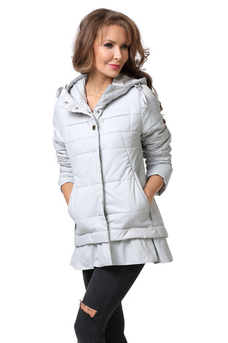 Маленькие верхние и нижние карманы застегиваются на молнию. Небольшое удлинение спинки и легкий воланчик по низу куртки придают данной модели актуальный шарм.