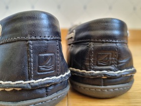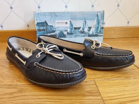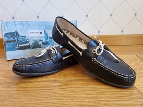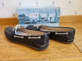 Новые мокасины известного американского бренда Sperry Top-Sider, Montauk 1-Eye. Женские топсайдеры для яхтинга Sperry Top-Sider – это классика, которая неподвластна времени и моде. Кроме нескользящей и не оставляющей следов подошвы, обувь Sperry Top-Sider отличается материалами: Пятна и влагостойкая кожа, применяемая для производства, устойчива к многократному намоканию. Каноническая система шнуровки из сыромятной кожи, проходящая по периметру всей стопы для регулируемой надежной посадки надежно фиксирует обувь на ноге, анодированные кольца для шнурков не ржавеют и даже после нескольких сезонов носки будут выглядеть надлежащим образом. Цвет: Black. Состав: натуральная кожа 100%. Размер: 10 USA Width: B – Medium, наш 40, длина по стельке 27,5 см. В коробке.