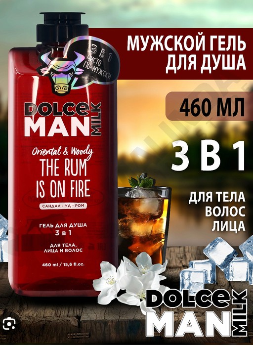 — Мужской гель для душа 3 в 1 Жгучий ром Dolce milk