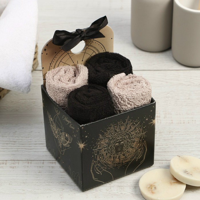 Заказать Набор из 4х махровых полотенец 30*30 Бежевые/Чёрные