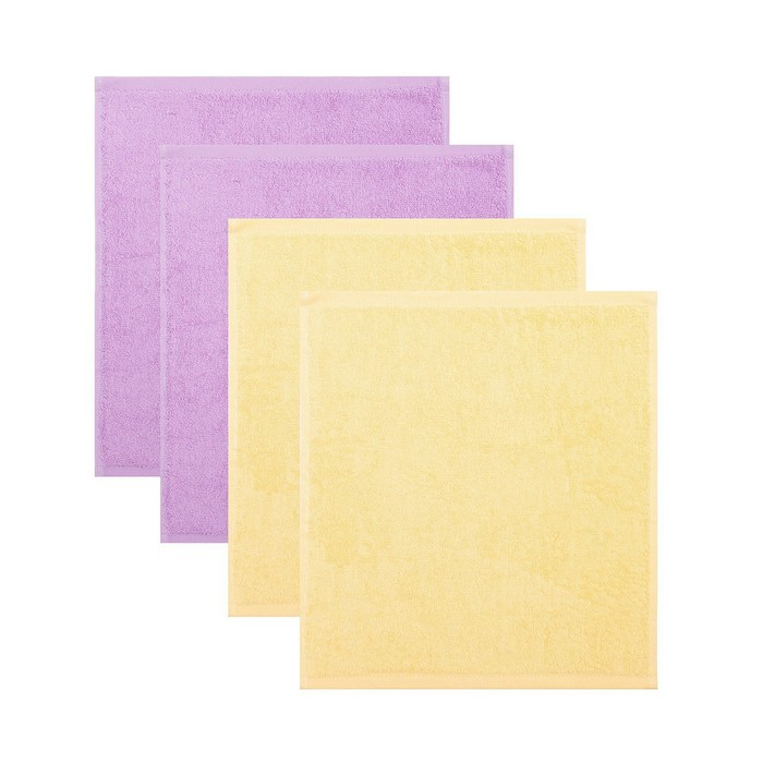 Набор из 4х махровых полотенец 30*30 Фиолетовые / Жёлтые