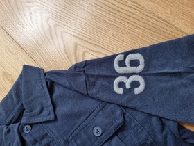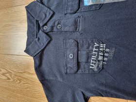Новое поло известного, американского бренда ChildrensPlace, military polo. Поло изготовлено из мягкого хлопка с планкой на две пуговицы, короткие рукава, прорези по бокам. Два кармана на груди с застежкой на пуговицу. Принт на груди «Military», нашивка спереди «Utility», и вышивка «№36» на левом рукаве. Машинная стирка. Состав: 100% хлопок. Цвет: new navy. Размер: S (5/6) для мальчика 5-6 лет, ростом 112-118 см.