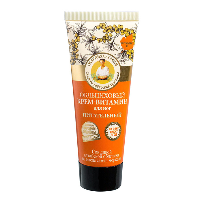 Облепиховый крем-витамин для ног на основе сока диких ягод насыщает кожу витаминами, смягчает, надолго сохраняя ощущение комфорта.