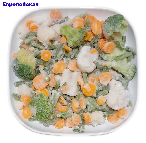 Состав смеси: цветная капуста, морковь кубик, брокколи, фасоль зеленая