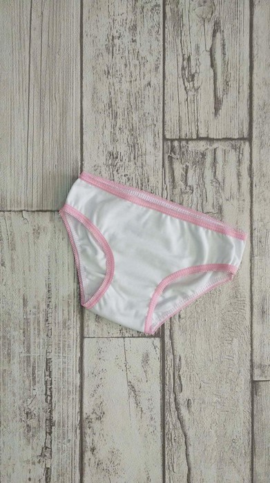 — Трусики для девочки однотонные белые с ПЕРСИКОВОЙ!!! бейкой