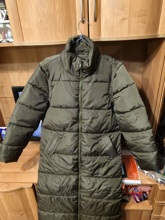 Длина по спинке 117 см, ширина по спинке от подмышки до подмышки 54 см, длина рукава по нижнему шву 45 см. Молния растегивается и снизу. Рукава на молнии, можно сделать жилет.